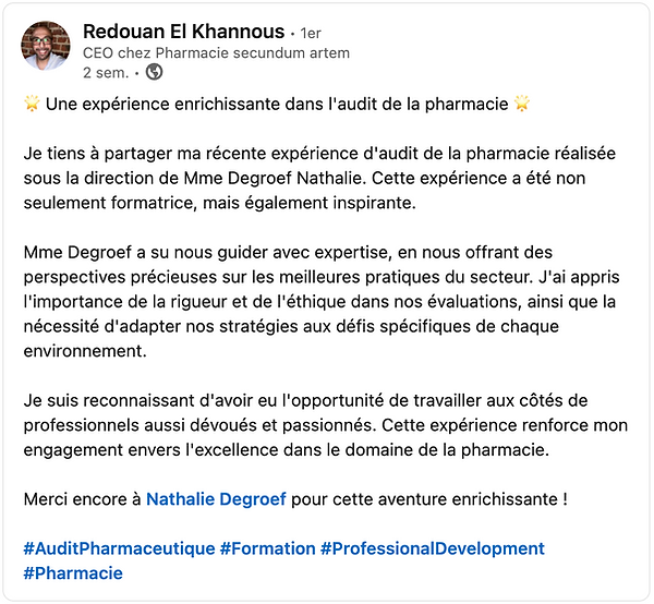 * les réponses à toute question par téléphone ou par mail après l'audit concernant la qualité dans l'officine